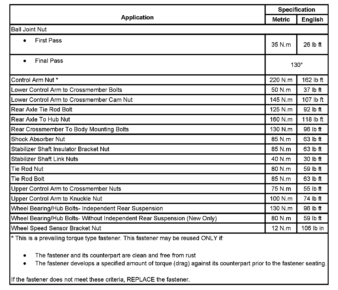 Fastener Tightening Specifications