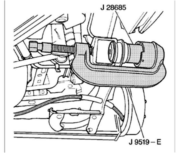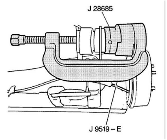 6. Use the J 28685 and the J 9519-E in order to remove the control arm bushing.