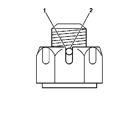 5. If necessary, tighten the ball stud castle nut in order to align the ball stud castle nut slot (1) to the ball stud cotter pin hole (2) as shown.
