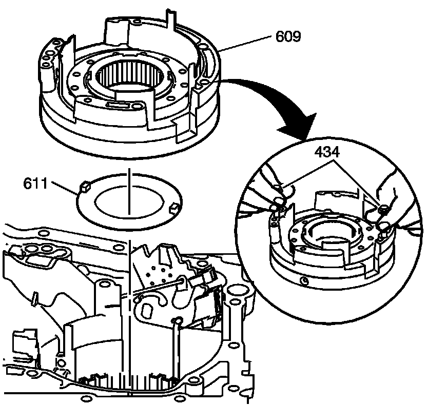 3. Remove the thrust washer (611) from the second clutch housing. The washer may be stuck to the support assembly.