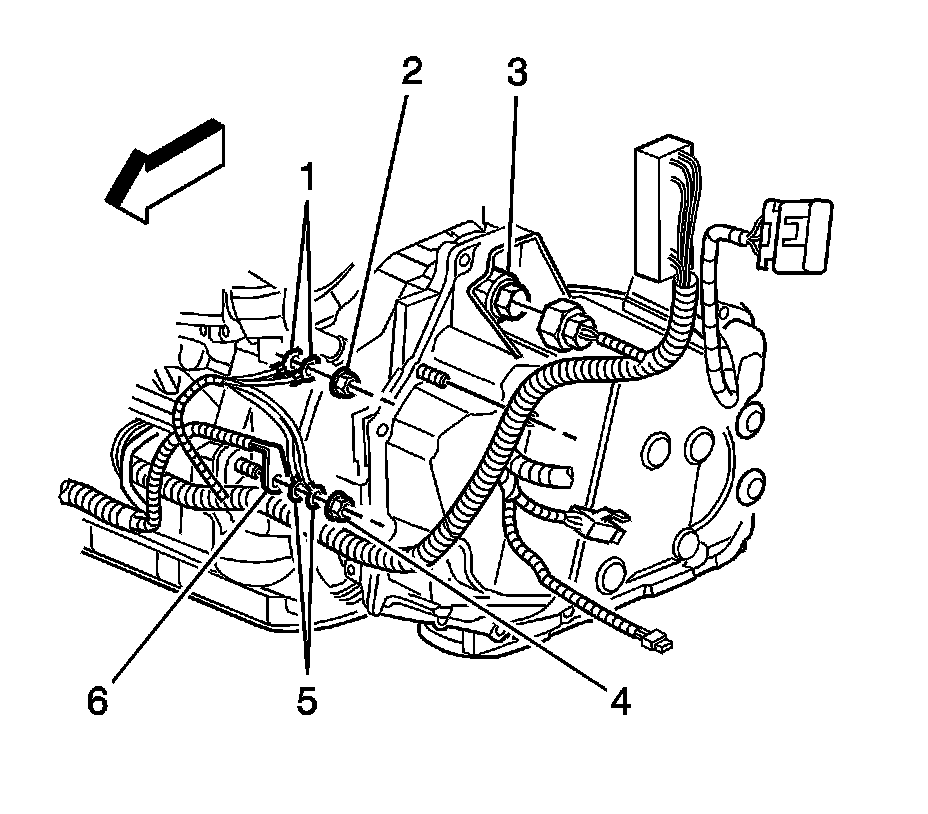6. Disconnect the wiring harness connector (3) from the transaxle.