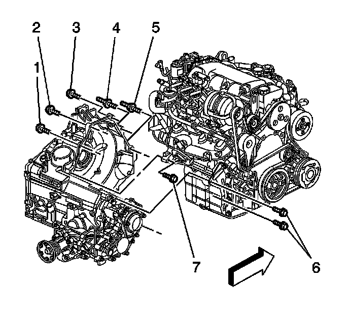 5. Install the lower transaxle bolt (6) and stud (5).