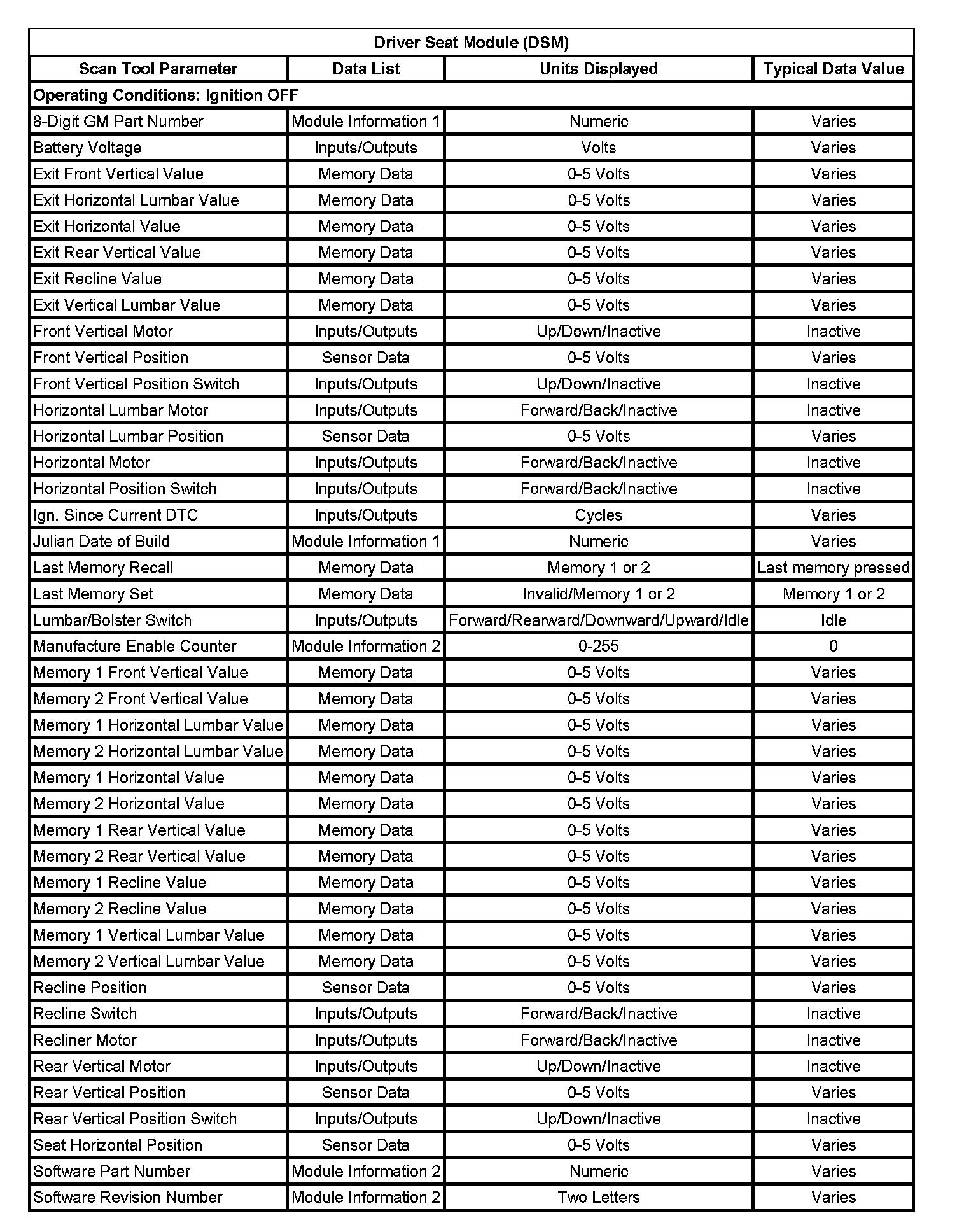 Driver Seat Module (DSM):