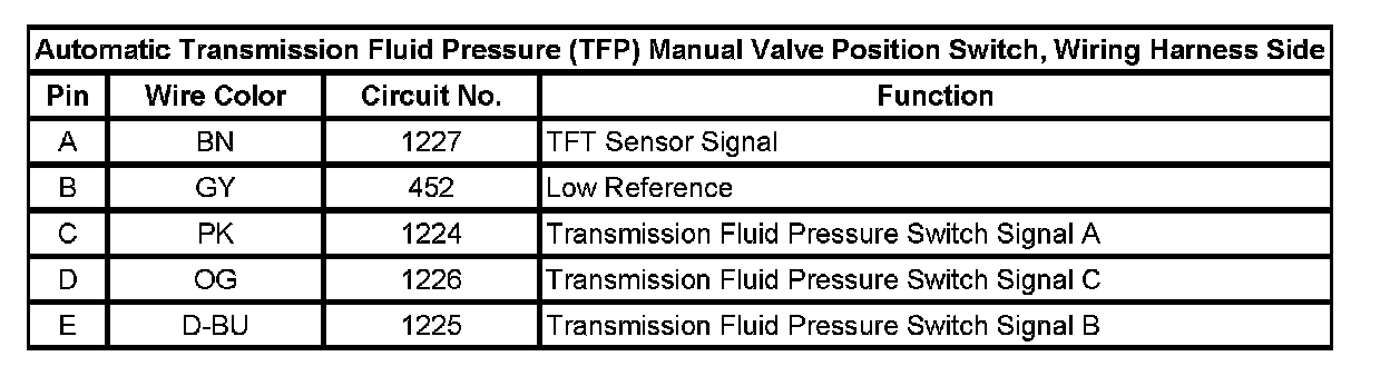 Automatic Transmission Fluid Pressure (TFP) Manual Valve Position Switch, Wiring Harness Side: