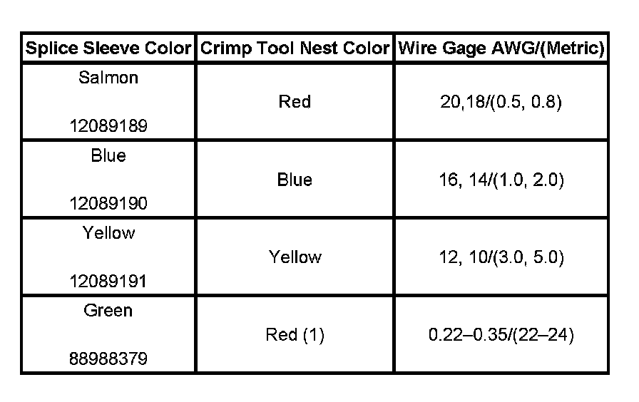 5. Select the proper duraseal splice sleeve (2) and the required crimp nest tool. Refer to the Crimp and Seal Splice Table.