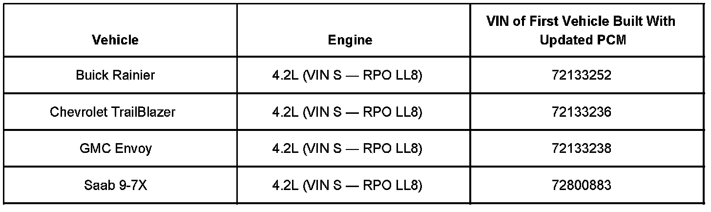 Technicians are to reprogram the PCM in vehicles built prior to the VIN breakpoints shown.
