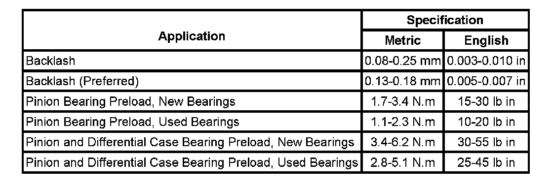 Axle Preload and Backlash Specifications: