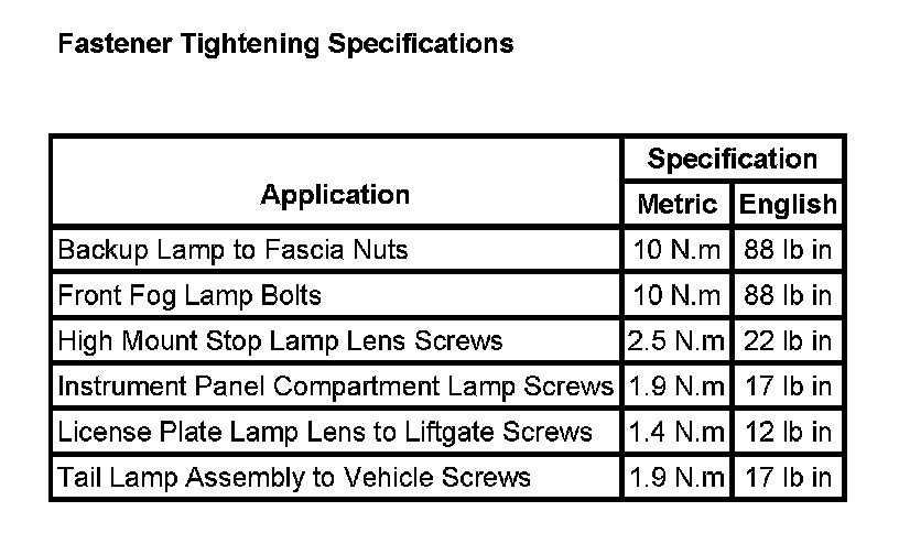 Fastener Tightening Specifications:
