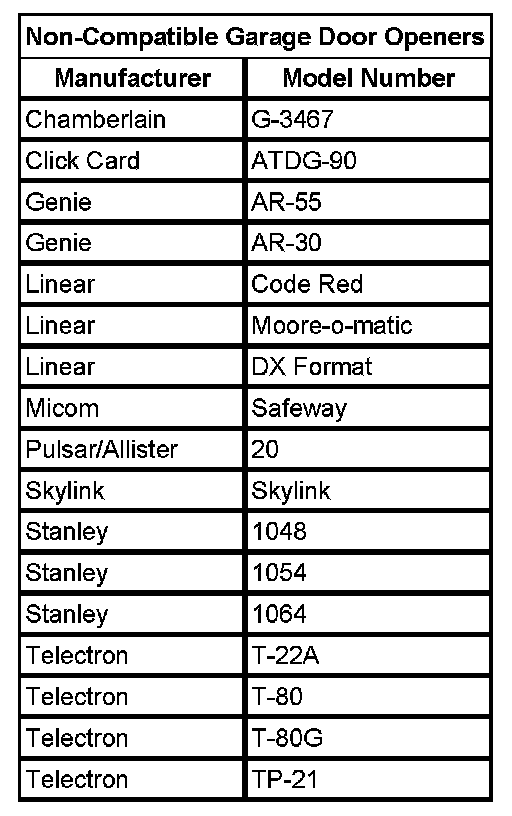 Important: Do not use the garage door opener (GDO) with any garage door opener that does not have the stop and reverse safety feature. This includes any garage door opener model manufactured before April 1, 1982.
