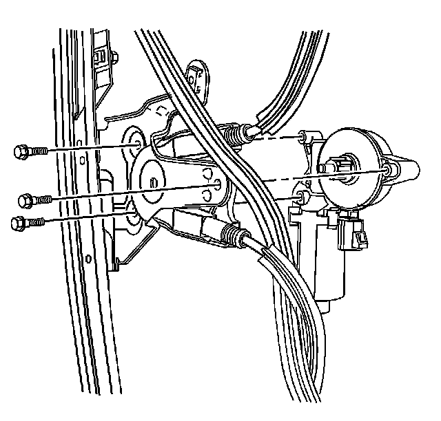 2. Remove the bolts retaining the window regulator motor to the window regulator.