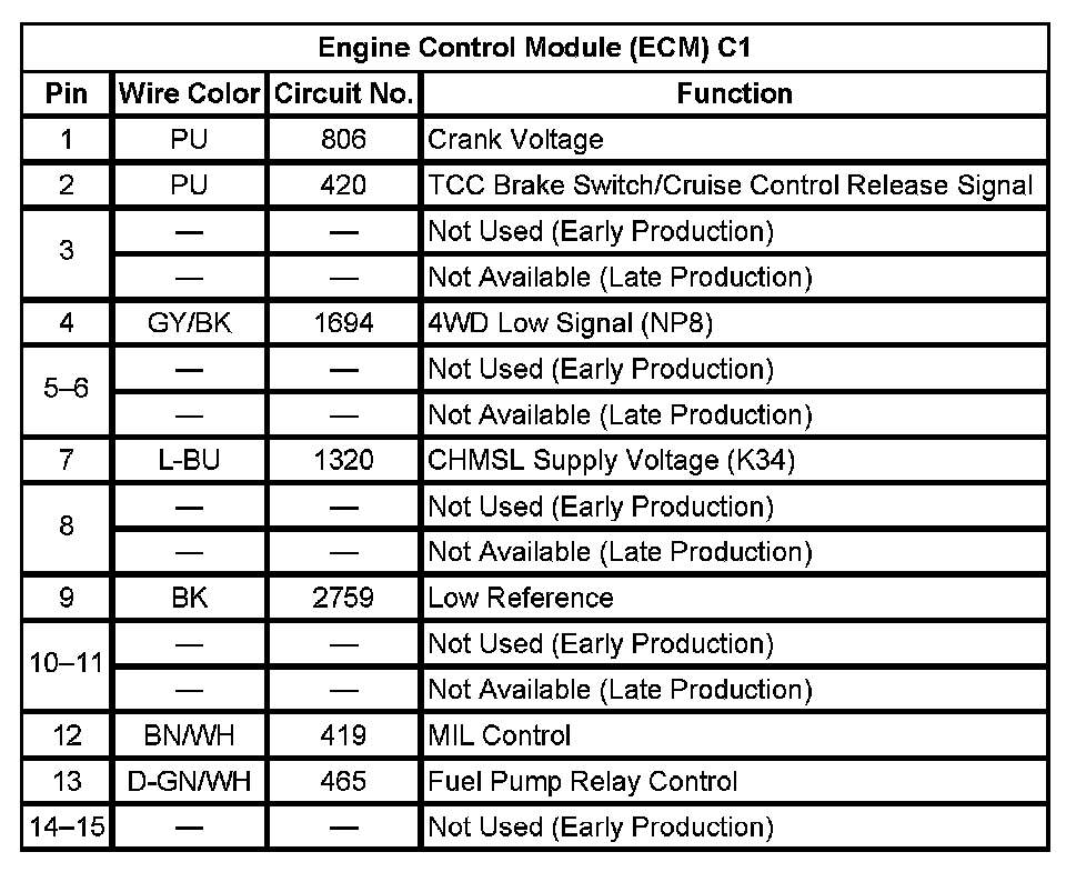 Engine Control Module (ECM) C1 (Pin 1 To 15):