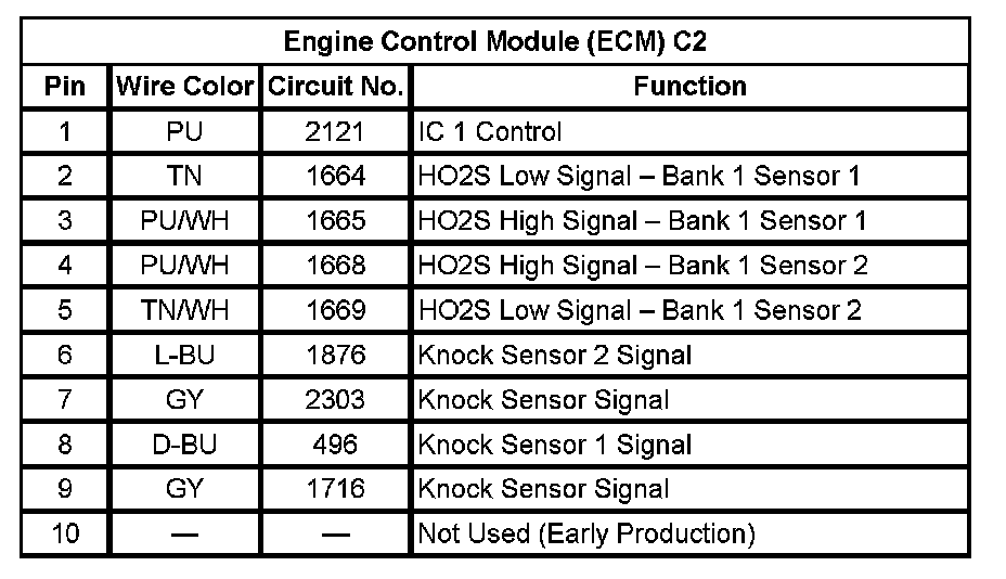 Engine Control Module (ECM) C2 (Pin 1 To 10):