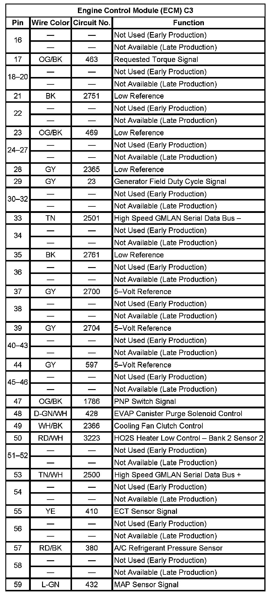 Engine Control Module (ECM) C1 (Pin 16 To 56):