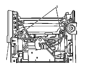 2. Adjust the front seat assembly up and forward in order to access the fasteners (1) at the rear of the front seat cushion assembly.