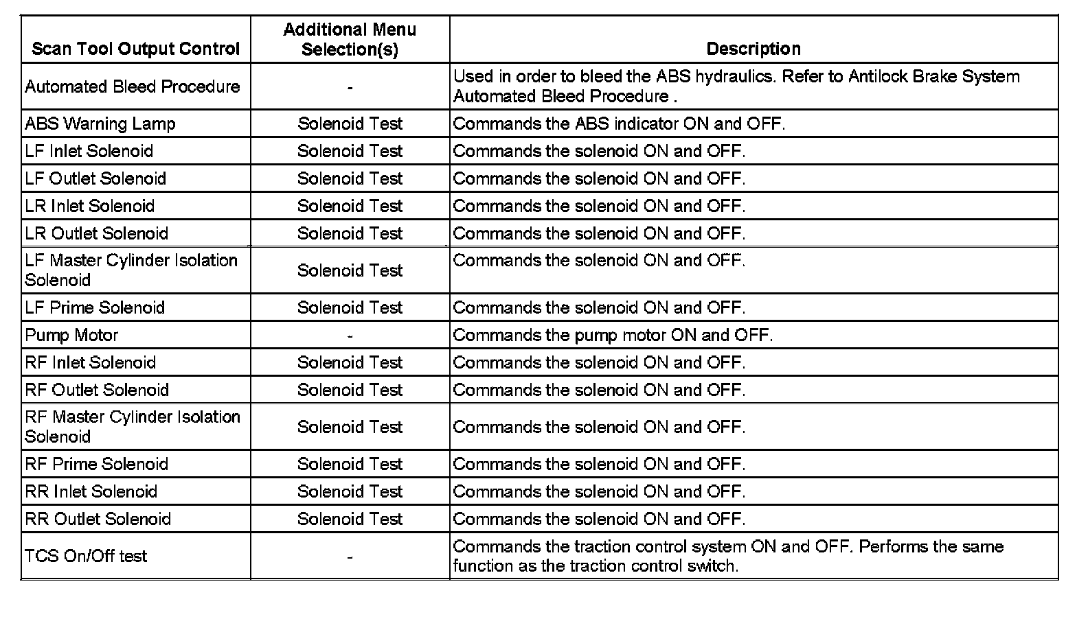 Scan Tool Output Control: