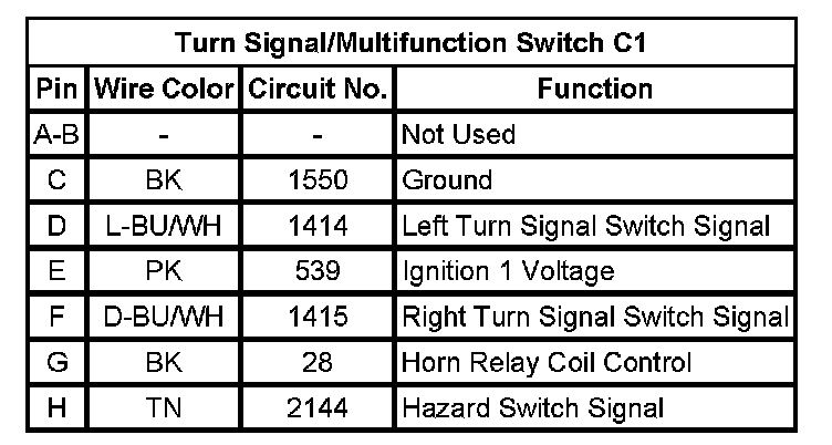 Turn Signal/Multifunction Switch C1