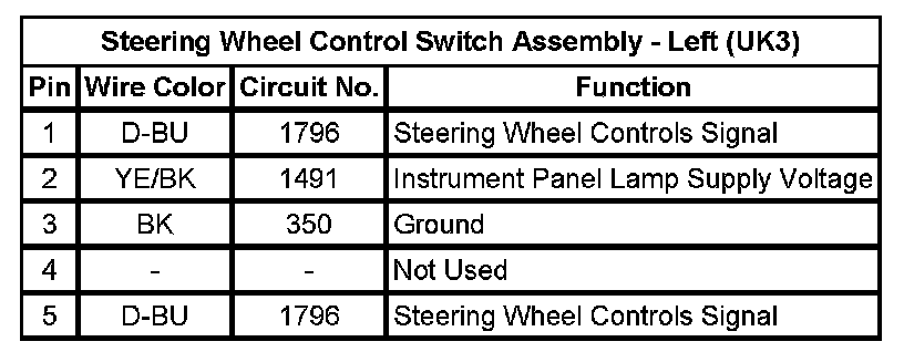 Steering Wheel Control Switch Assembly - Left (UK3)