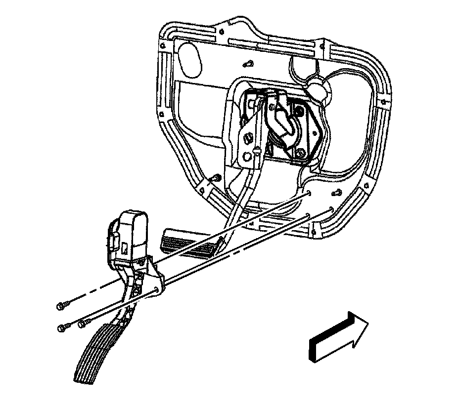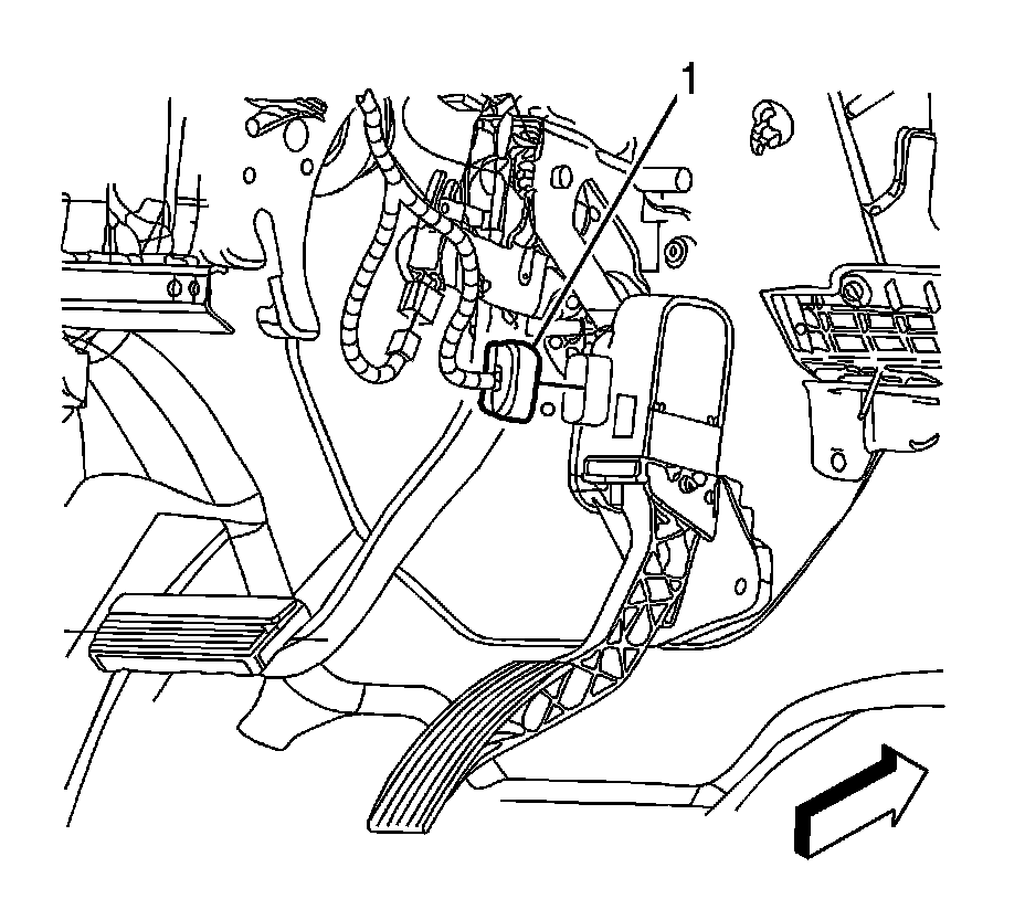 2. Disconnect the instrument panel (I/P) harness electrical connector (1) from the accelerator pedal position (APP) sensor.