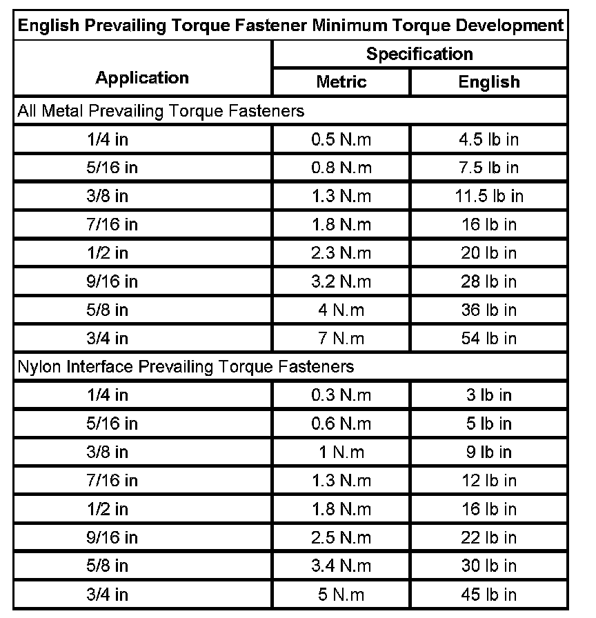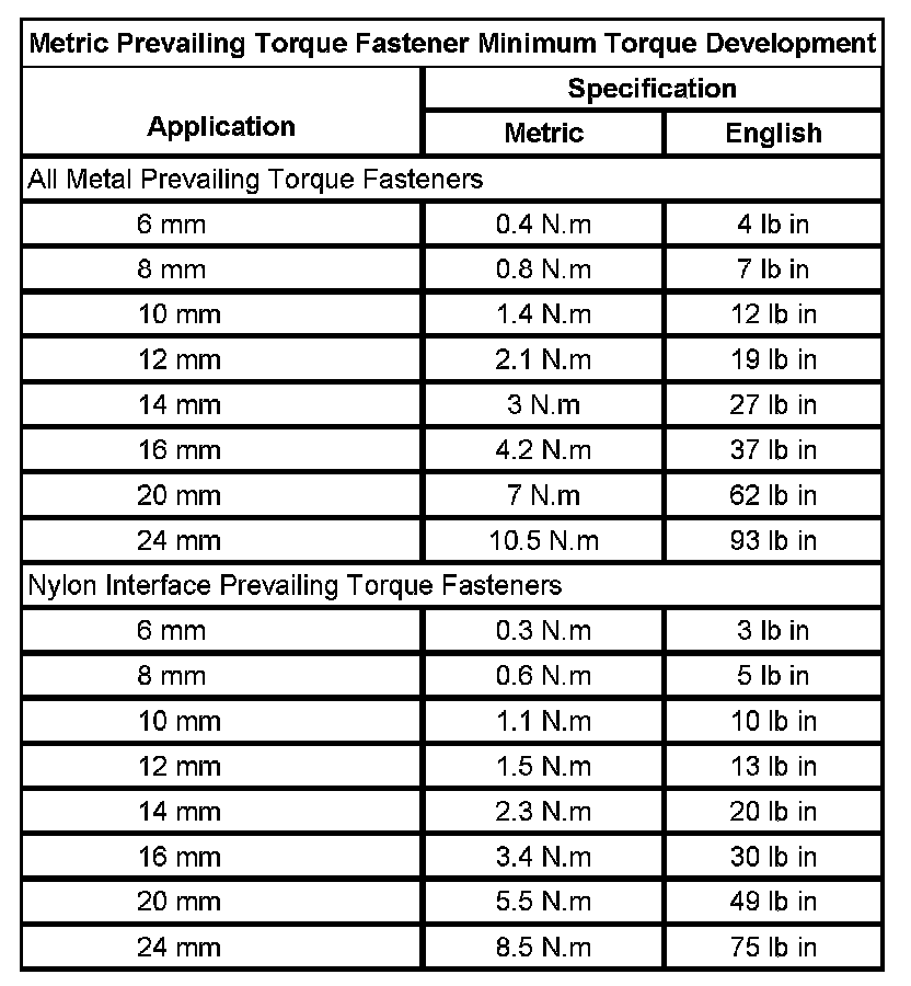 * The fastener develops the specified minimum torque against its counterpart prior to the fastener seating