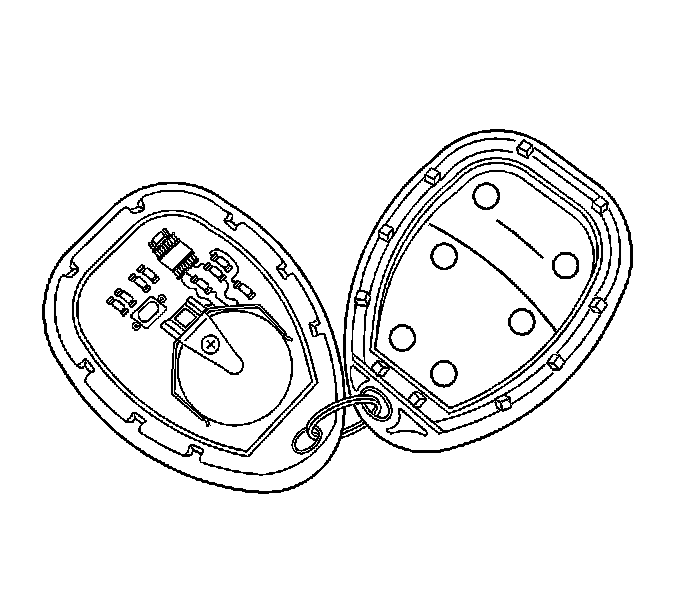 1. Insert a flat object, with a thin edge, into the notch located below the remote alarm button and separate the bottom half from the top half of the transmitter.