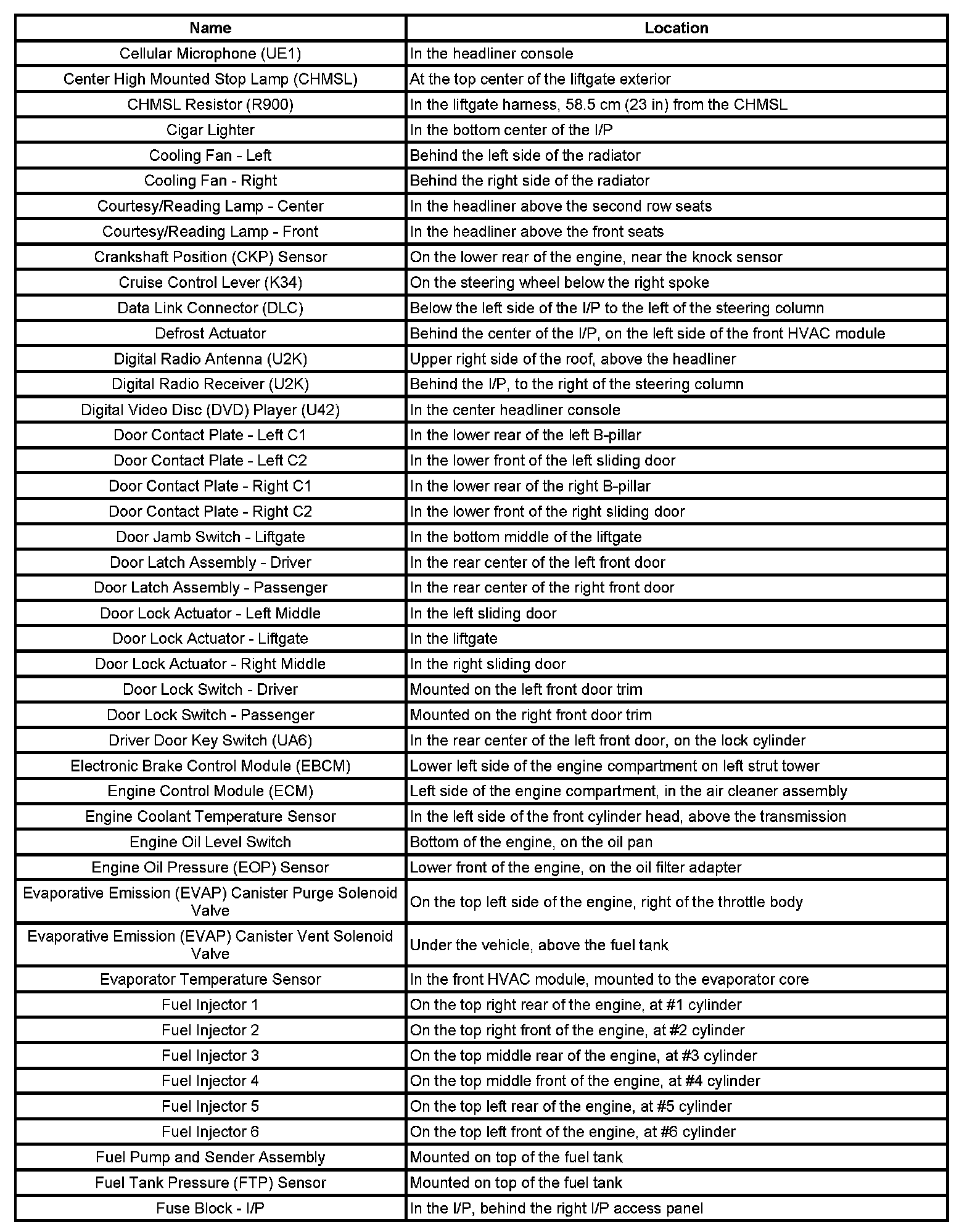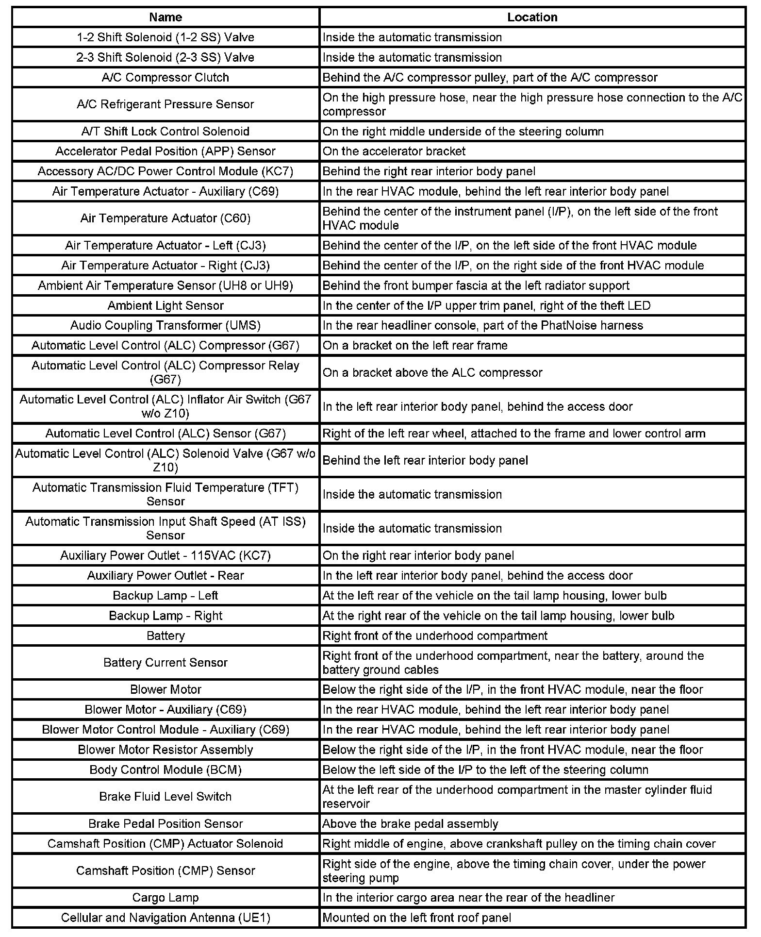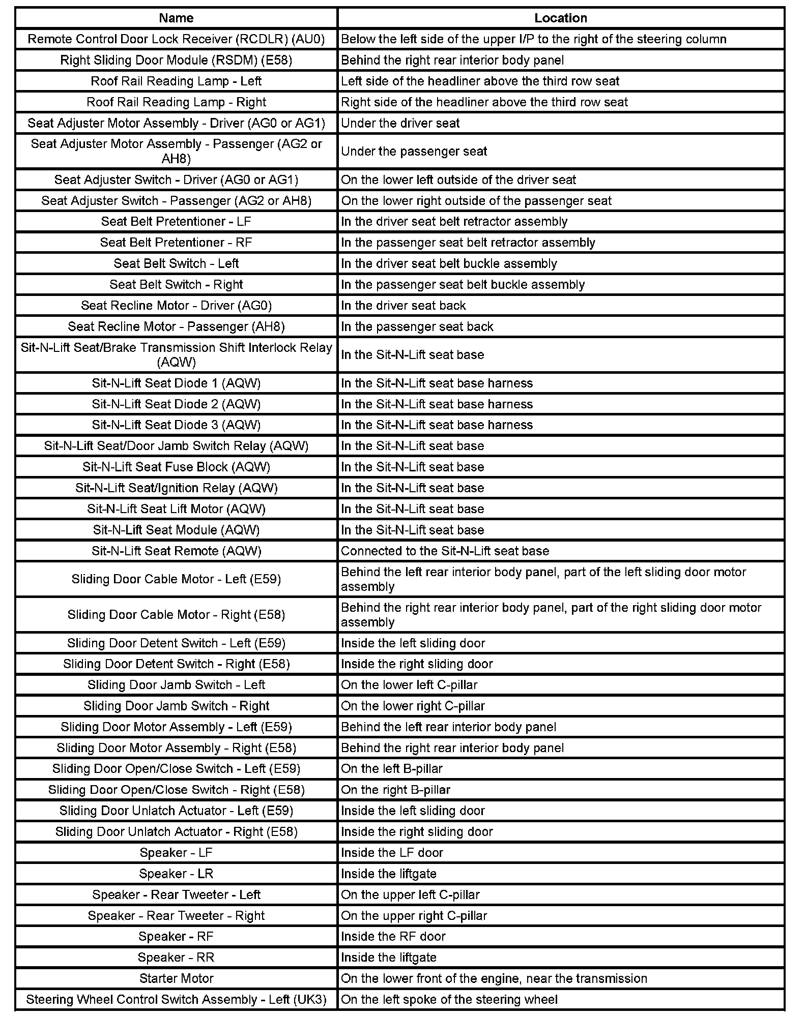 Master Electrical Component List