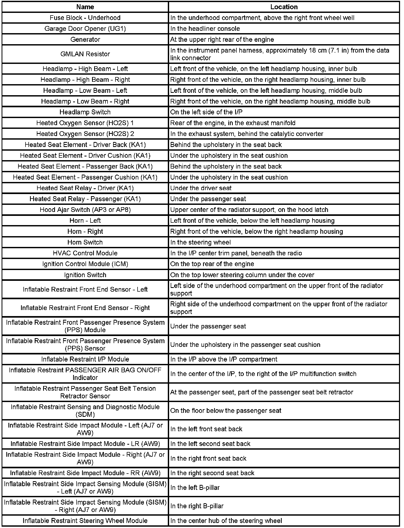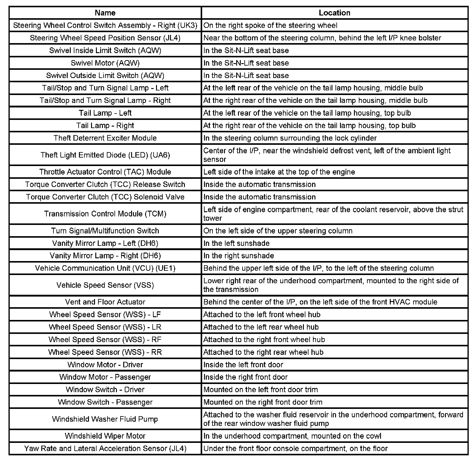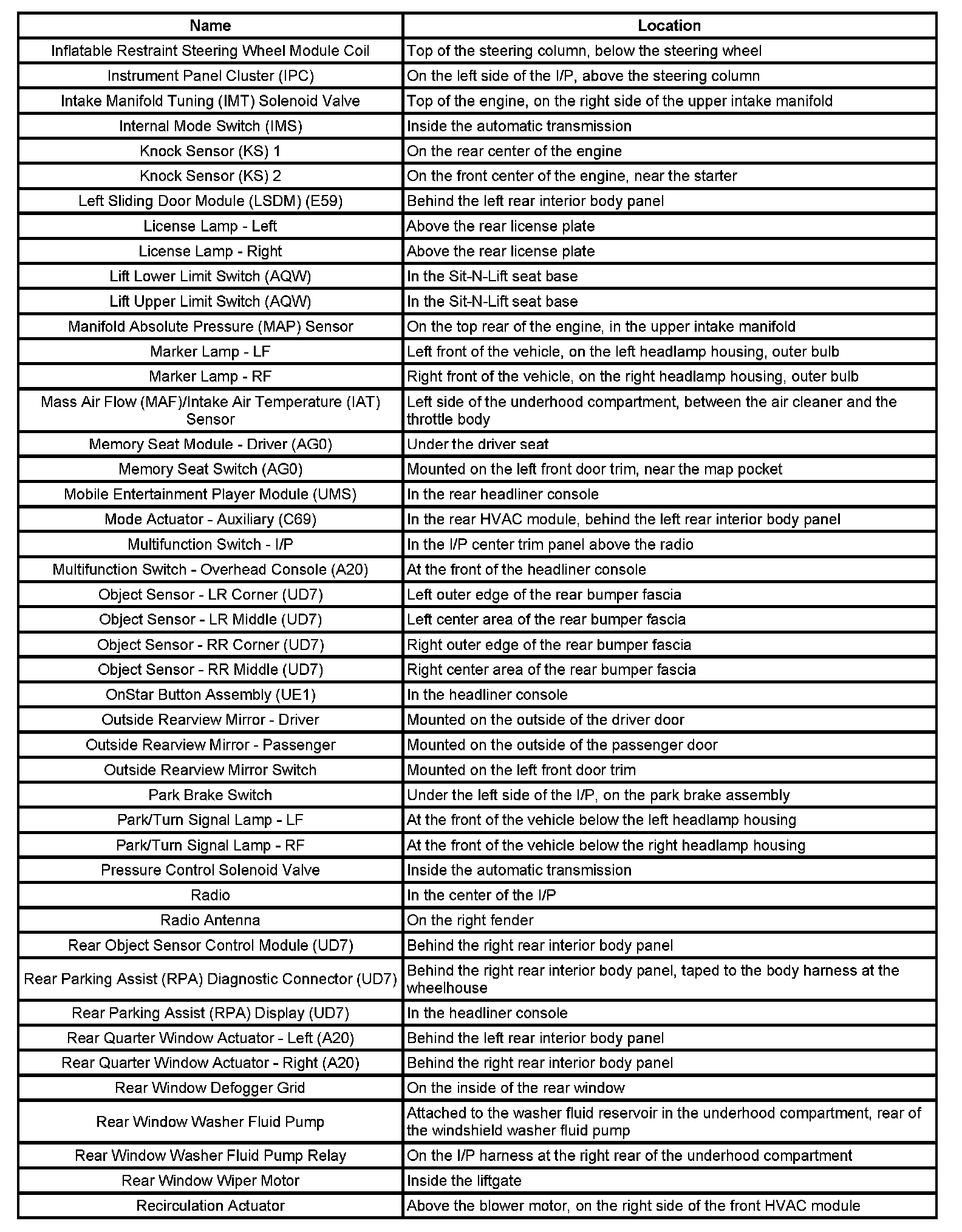 Master Electrical Component List