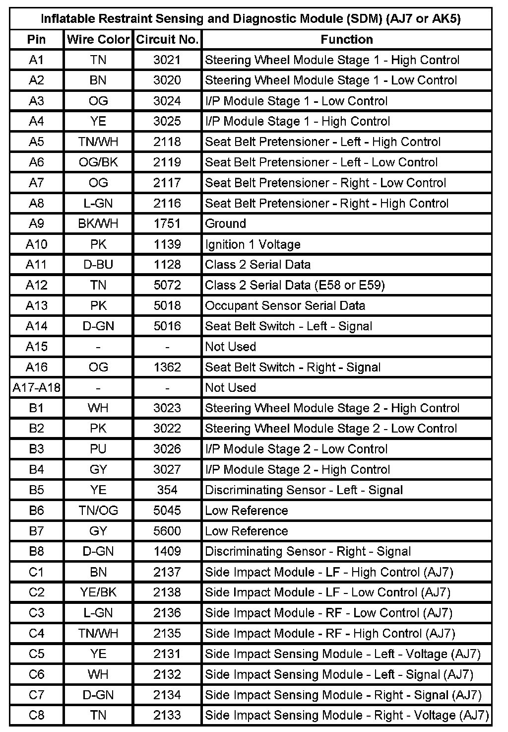 Inflatable Restraint Sensing and Diagnostic Module (SDM) (AJ7 or AK5)