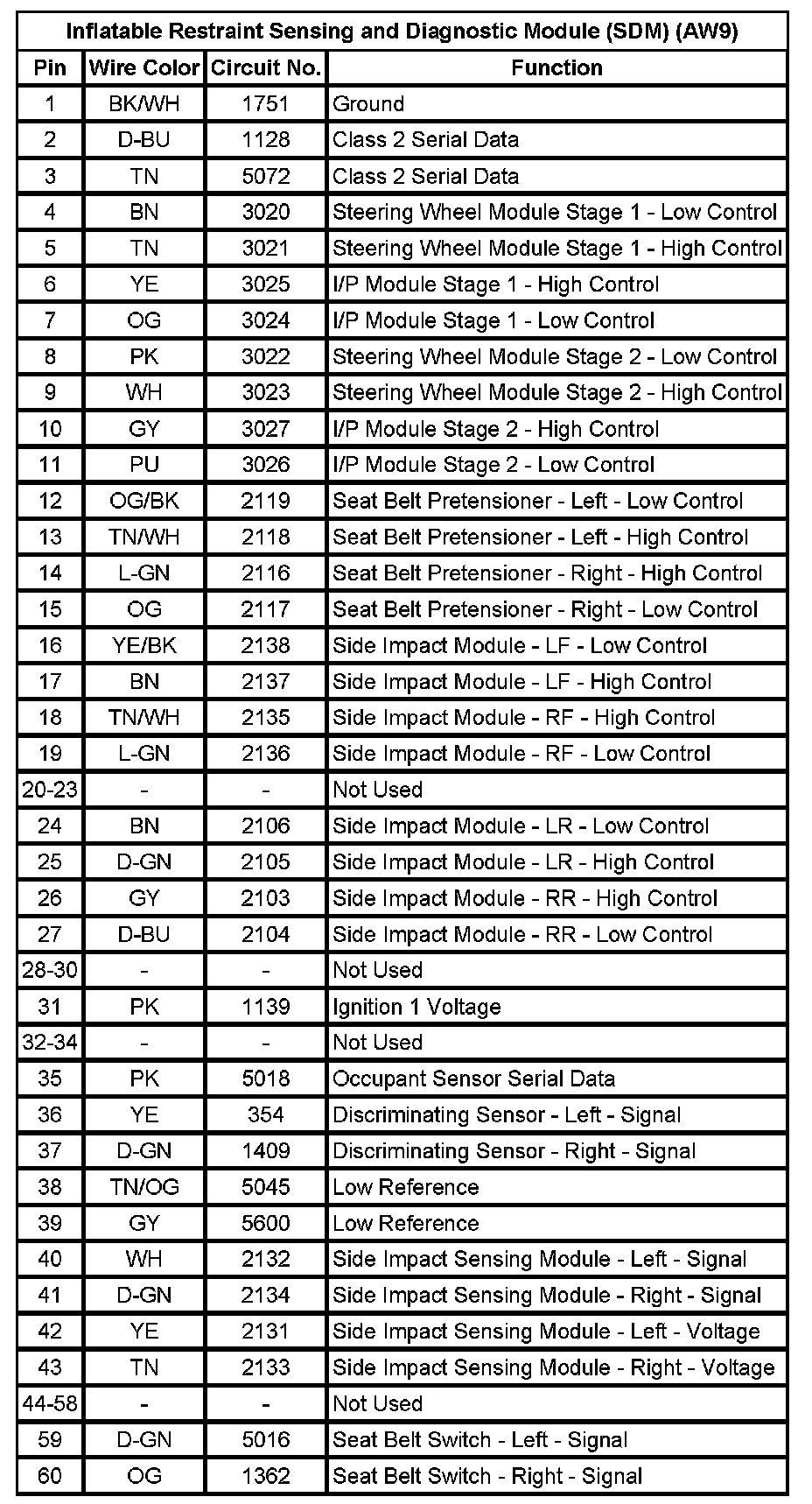 Inflatable Restraint Sensing and Diagnostic Module (SDM) (AW9)