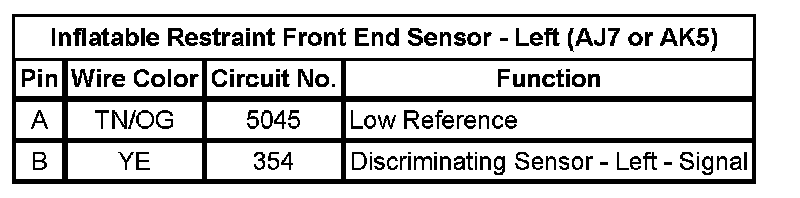 Inflatable Restraint Front End Sensor - Left (AJ7 or AK5)