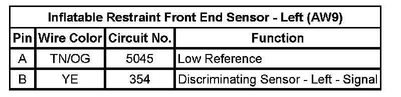 Inflatable Restraint Front End Sensor - Left (AW9)