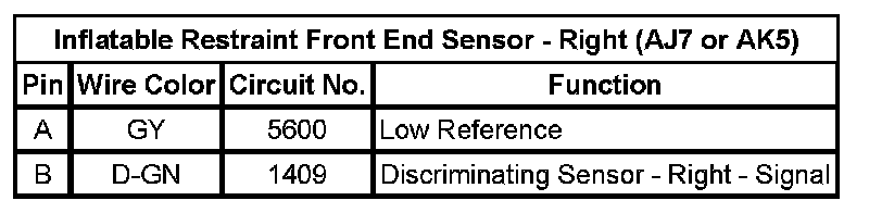Inflatable Restraint Front End Sensor - Right (AJ7 or AK5)
