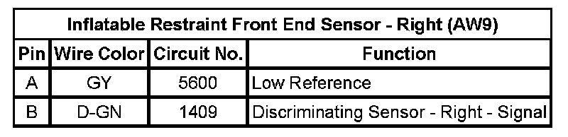 Inflatable Restraint Front End Sensor - Right (AW9)