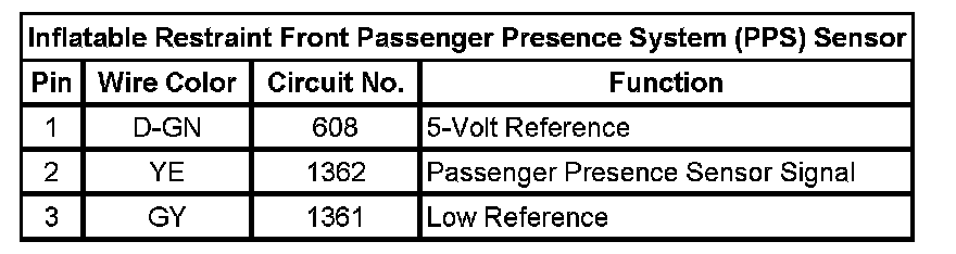 Inflatable Restraint Front Passenger Presence System (PPS) Sensor
