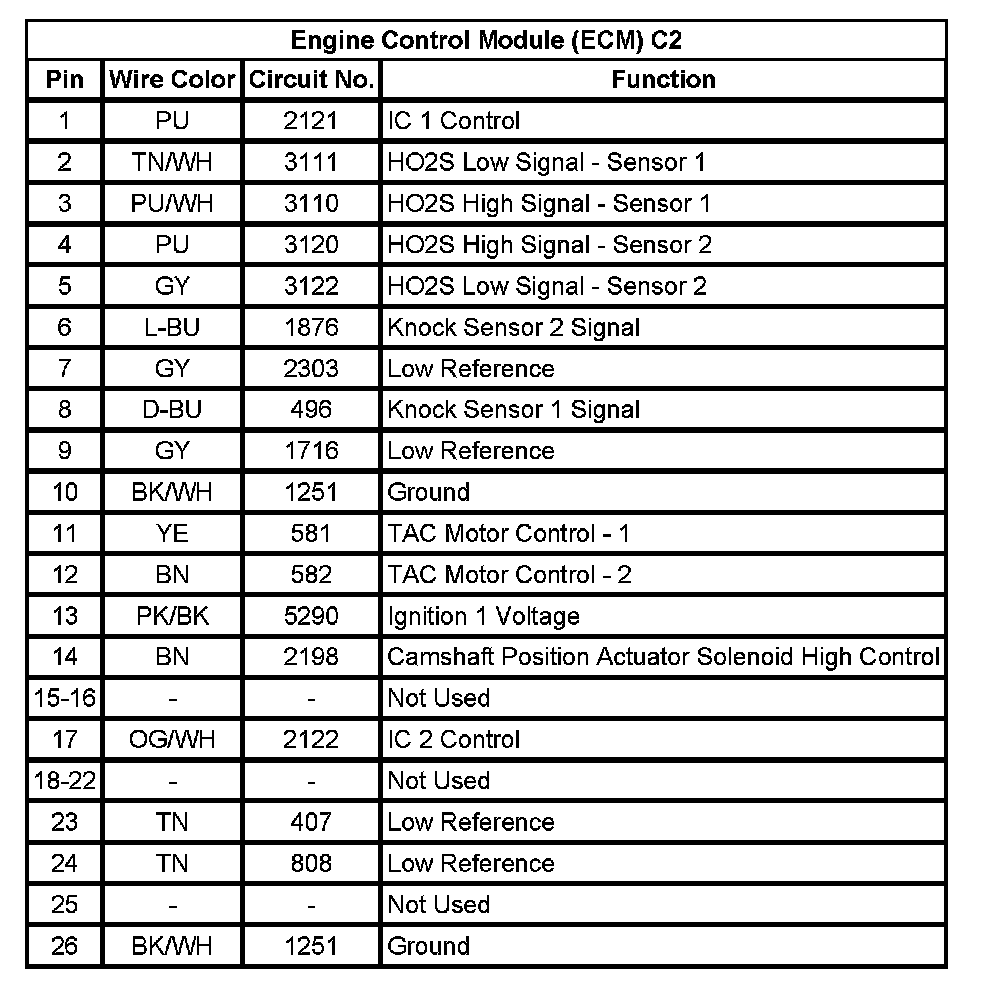 Engine Control Module (ECM) C2 (Pin 1 To 26):