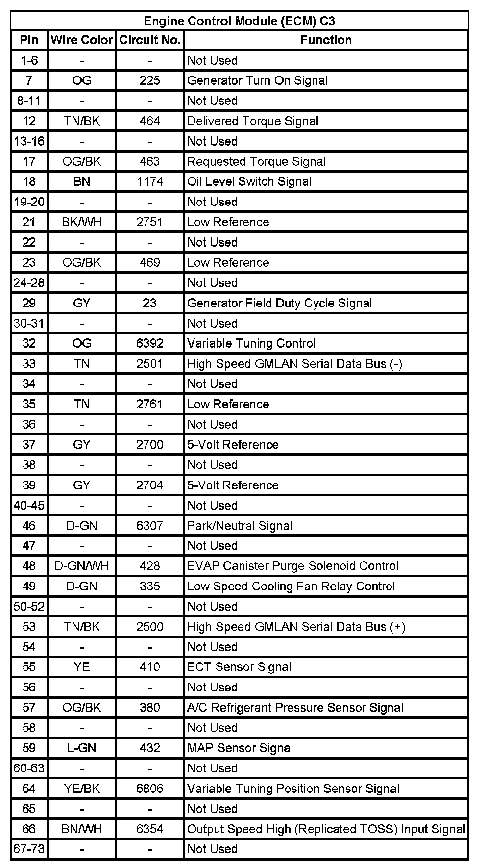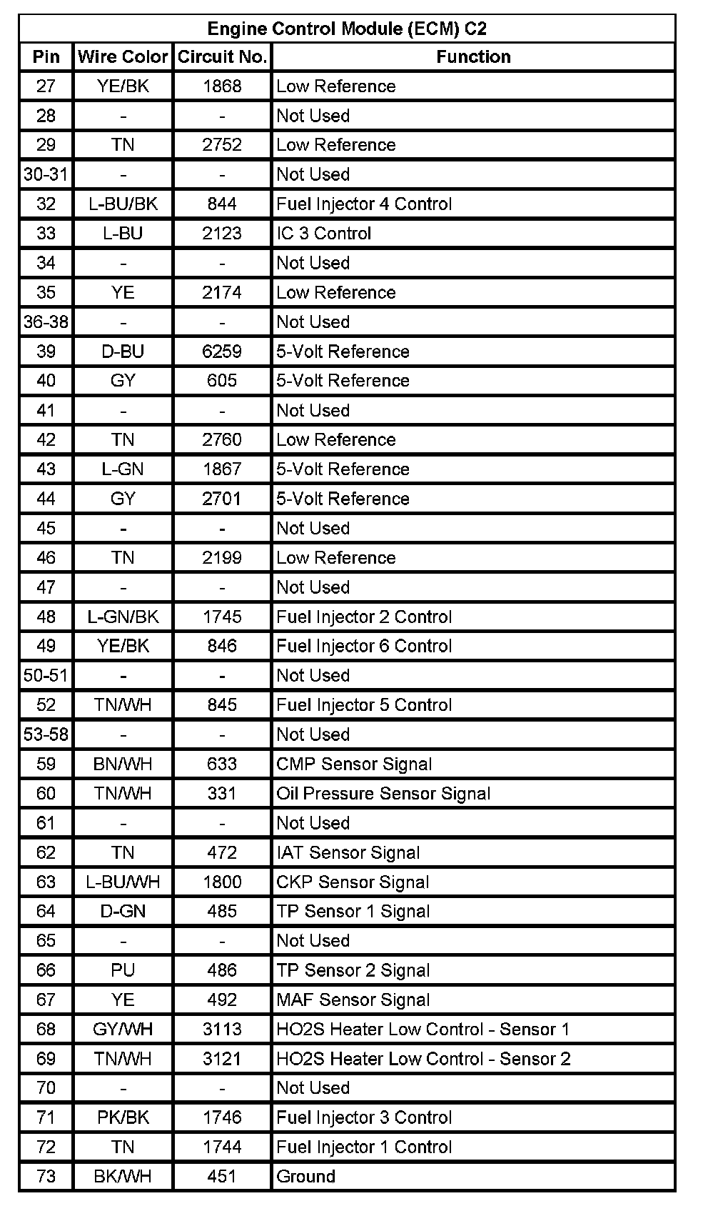 Engine Control Module (ECM) C2 (Pin 27 To 73):
