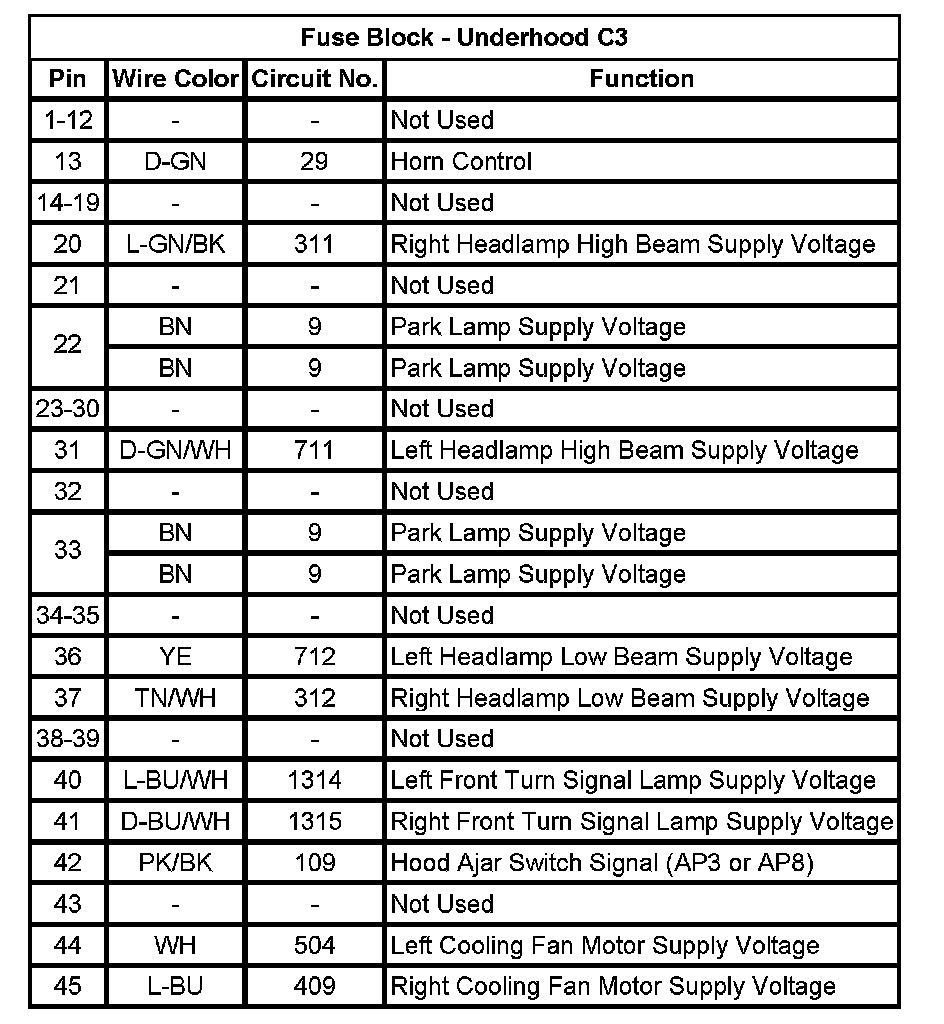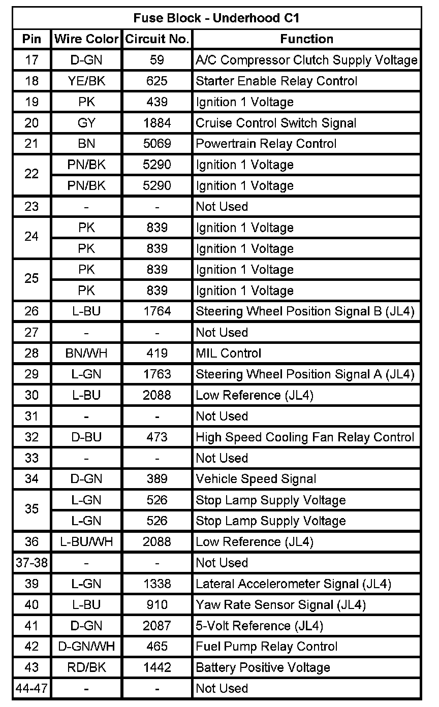 Fuse Block - Underhood C1 (Pin 17 To 47):