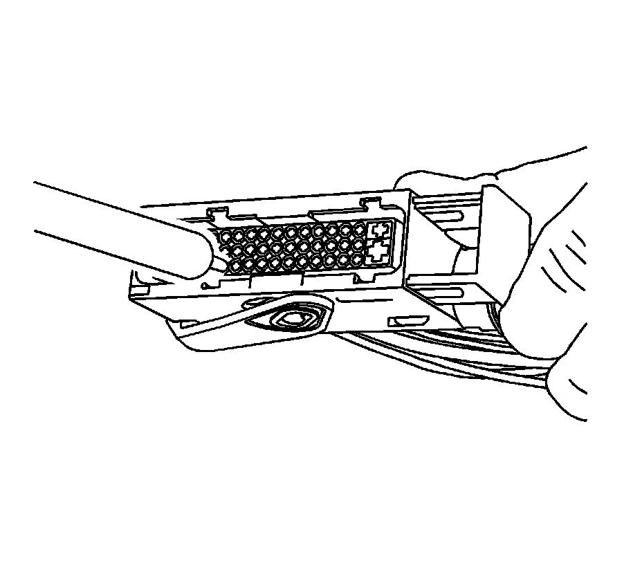 For the larger terminals insert theJ38125-556 (GM P/N 12093647) tool to release the terminals by inserting the tool into the terminal release cavity. For the smaller terminals insert theJ38125-560 (GM P/N 15314260) tool to release the terminals by inserting the tool into the terminal release cavity. See the release tool cross reference in the Reference Guide of the J-38125 to ensure that the correct release tool is used.