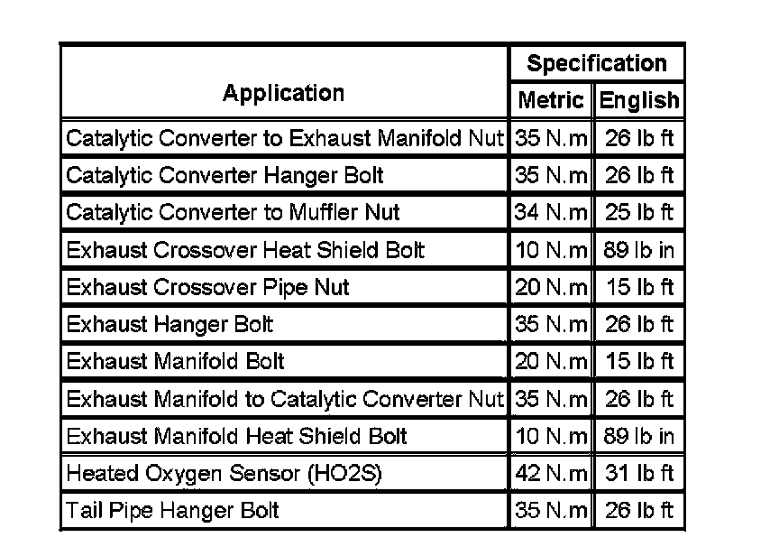Fastener Tightening Specifications: