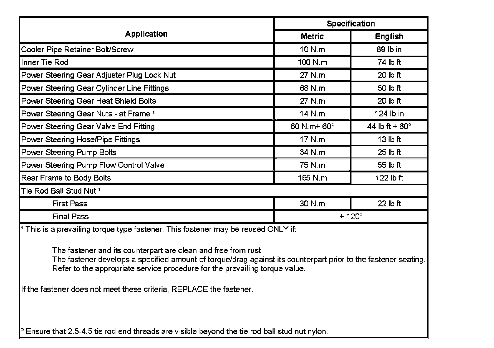 Fastener Tightening Specifications: