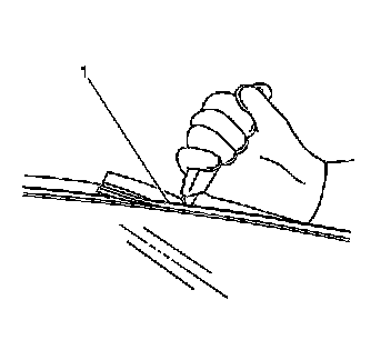 8. If the windshield reveal molding will not release, use a utility knife in order to cut around the windshield in order to remove the windshield reveal molding (1).