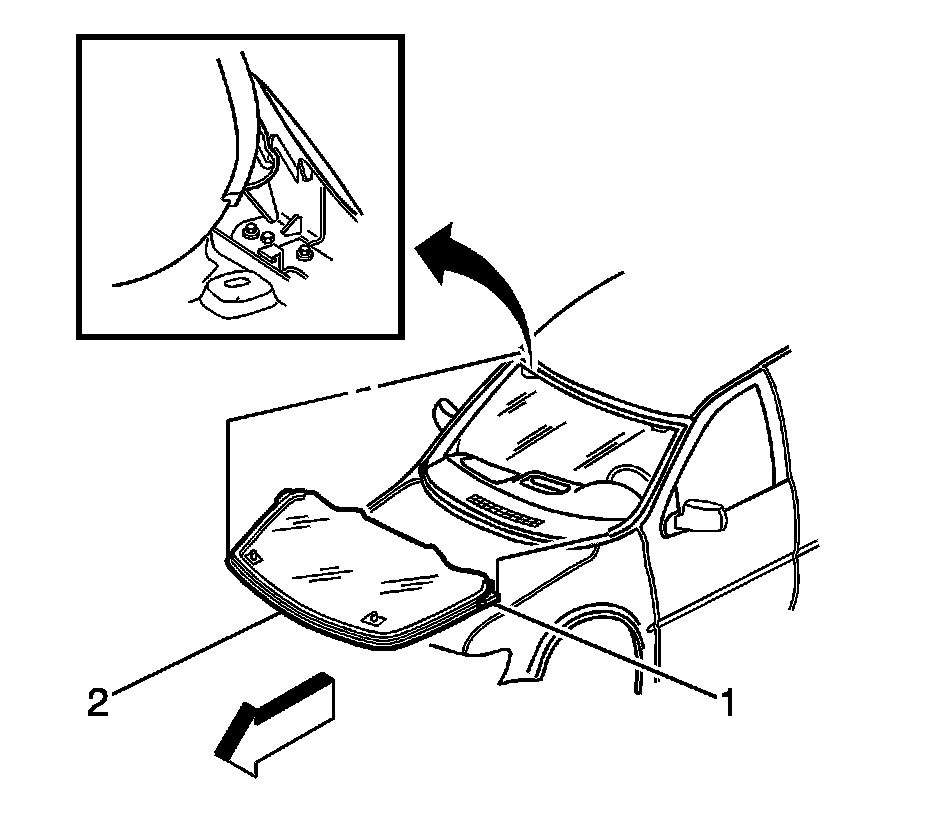 Important: The windshield reveal molding fills the cavities between the body and windshield. If the windshield reveal molding is stretched or damaged, the molding can not be reused.