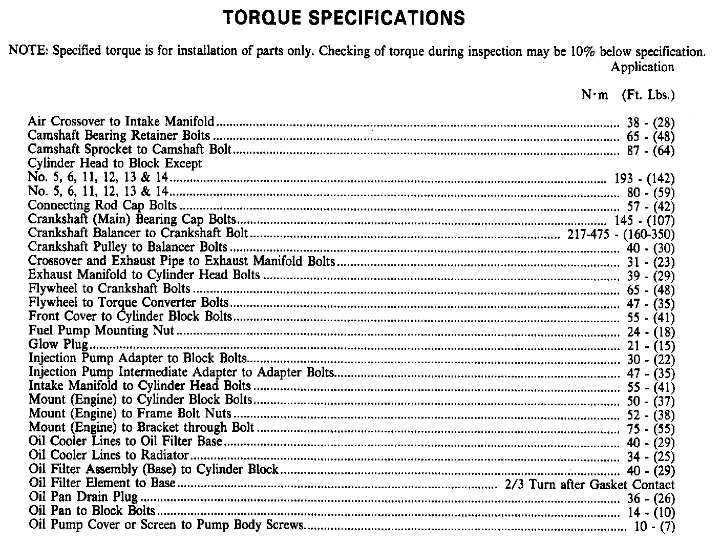 Torque Specifications: