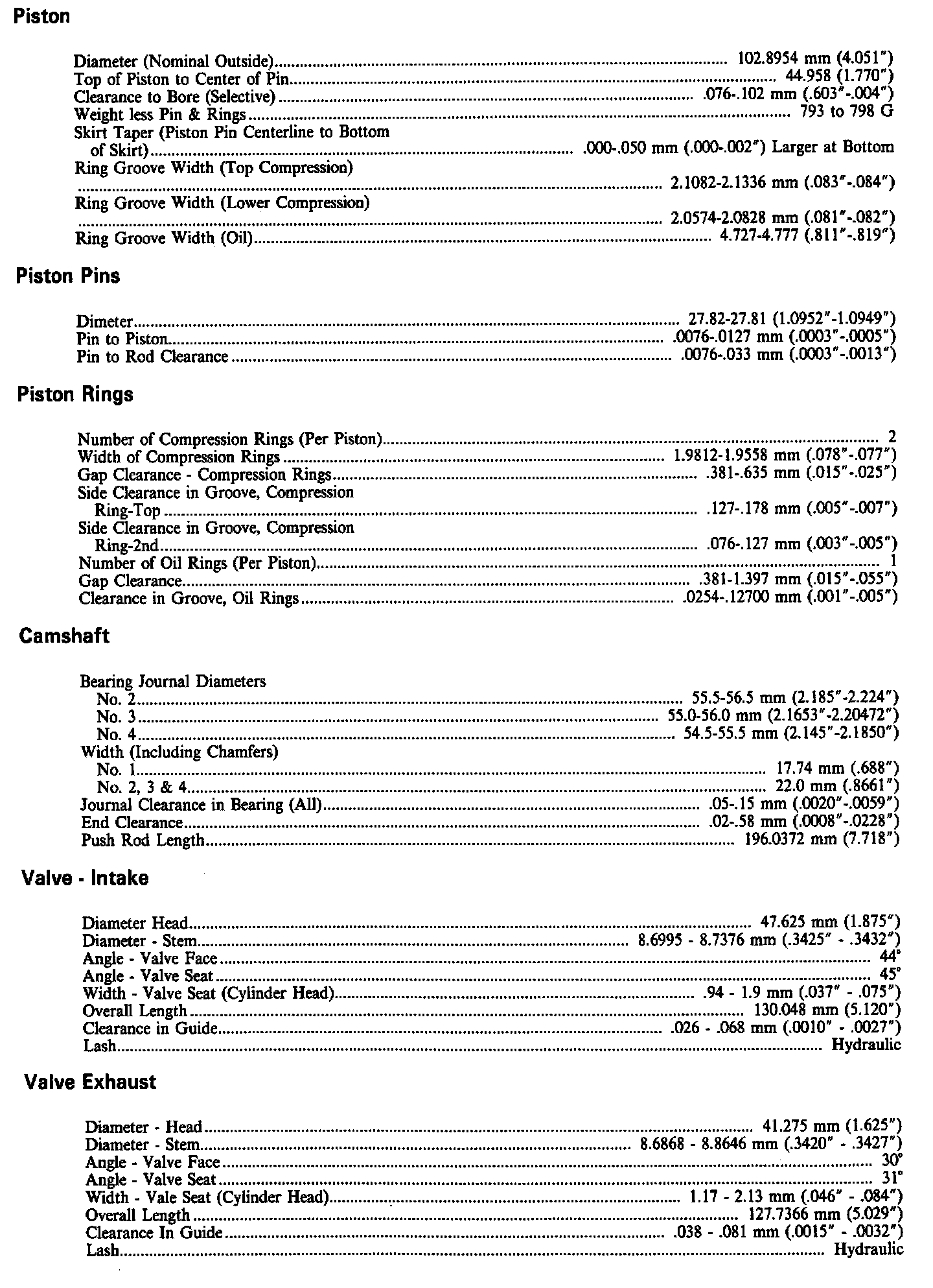 Engine Specifications: