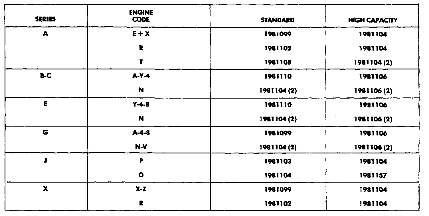 Engine Code A, X: