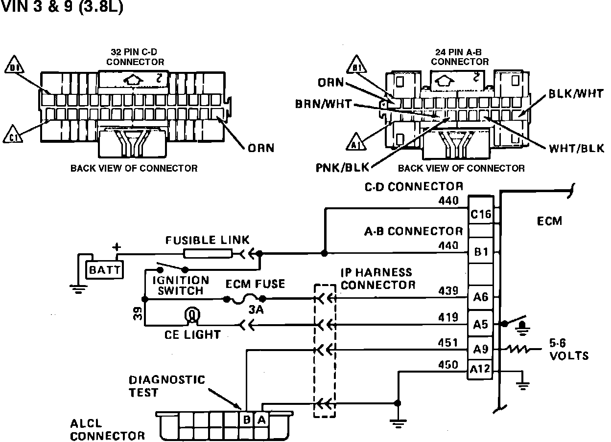1. If the light goes off when the ECM connector is disconnected, circuit 419 is not shorted to ground. Take this opportunity to physically check the connector terminals for proper contact.