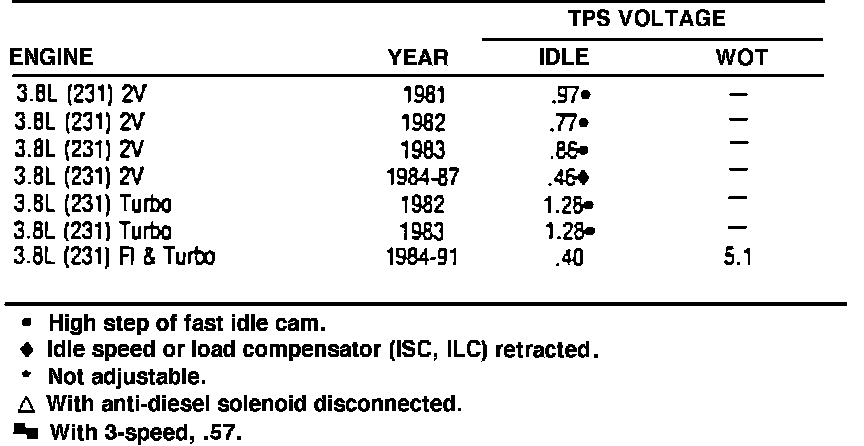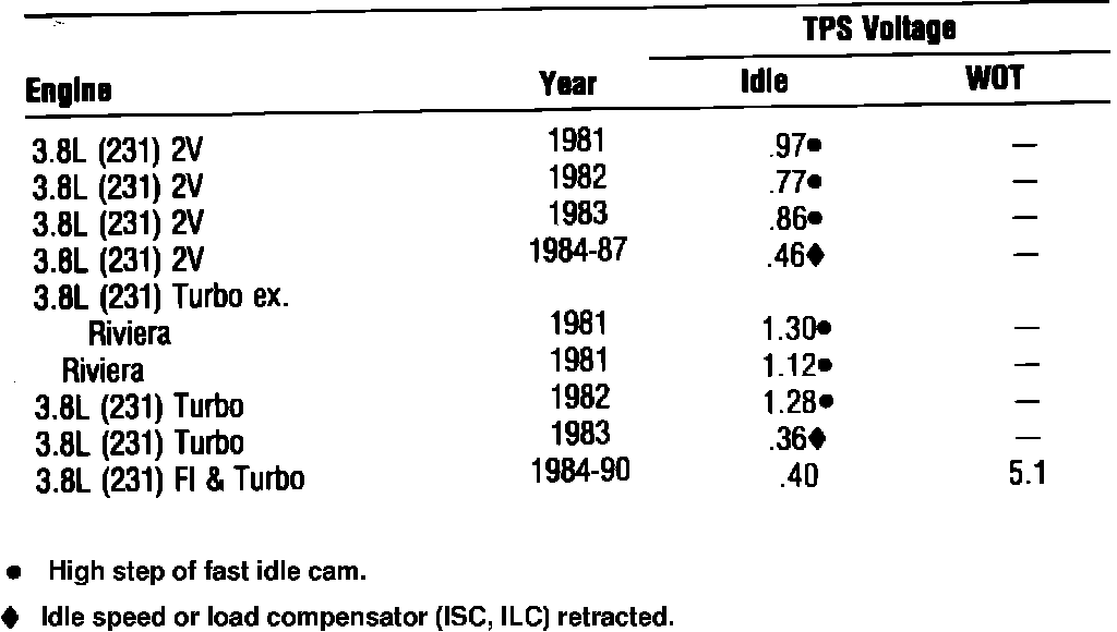 Throttle Position Sensor Specifications: