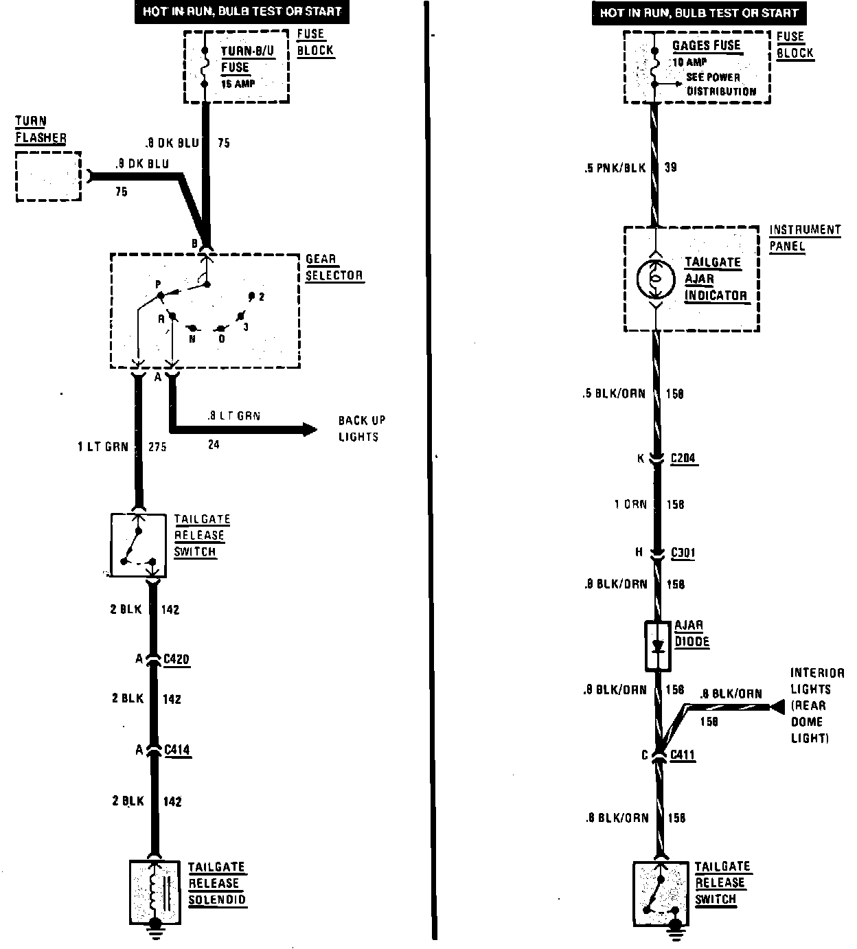 Tailgate Ajar Indicator & Tailgate Release Wiring Circuit:
