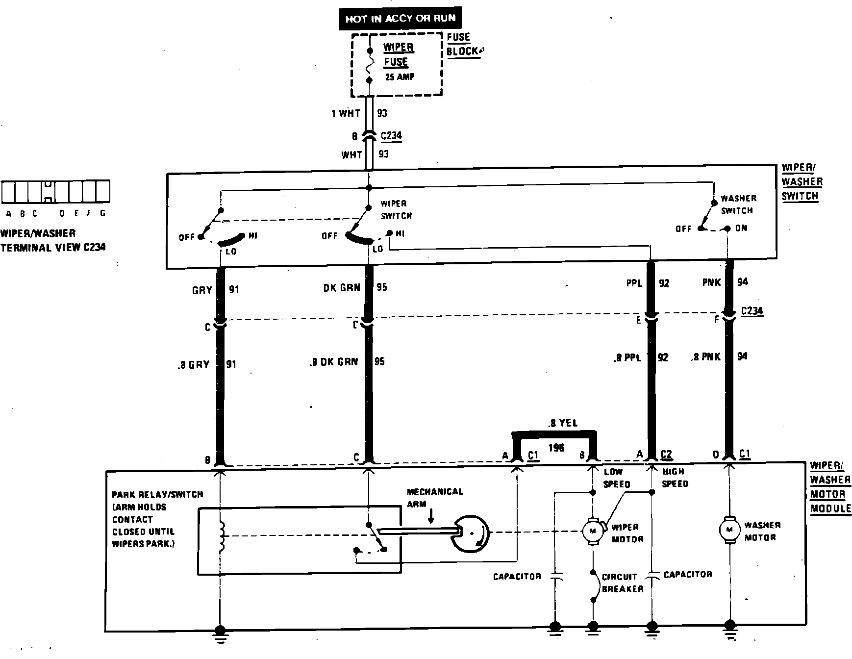 Windshield Wiper/Washer Wiring Circuit (Less Pulse Wipers):