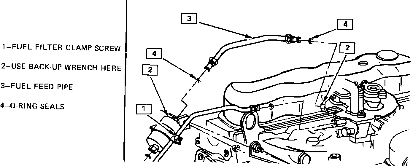 7. Remove fuel pipe from fuel filter. Use back-up wrench on fuel filter to prevent filter from turning.