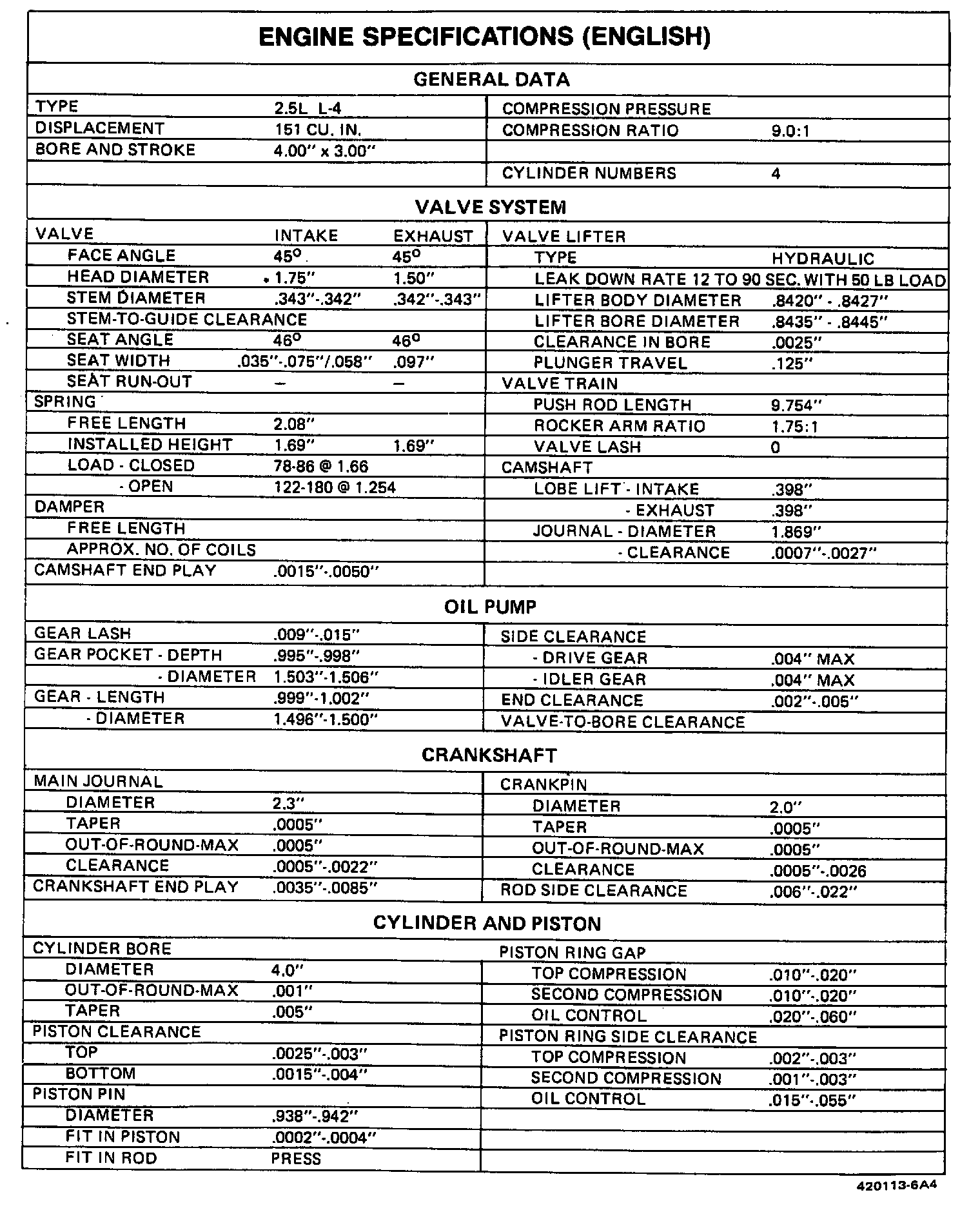 Engine Specifications: